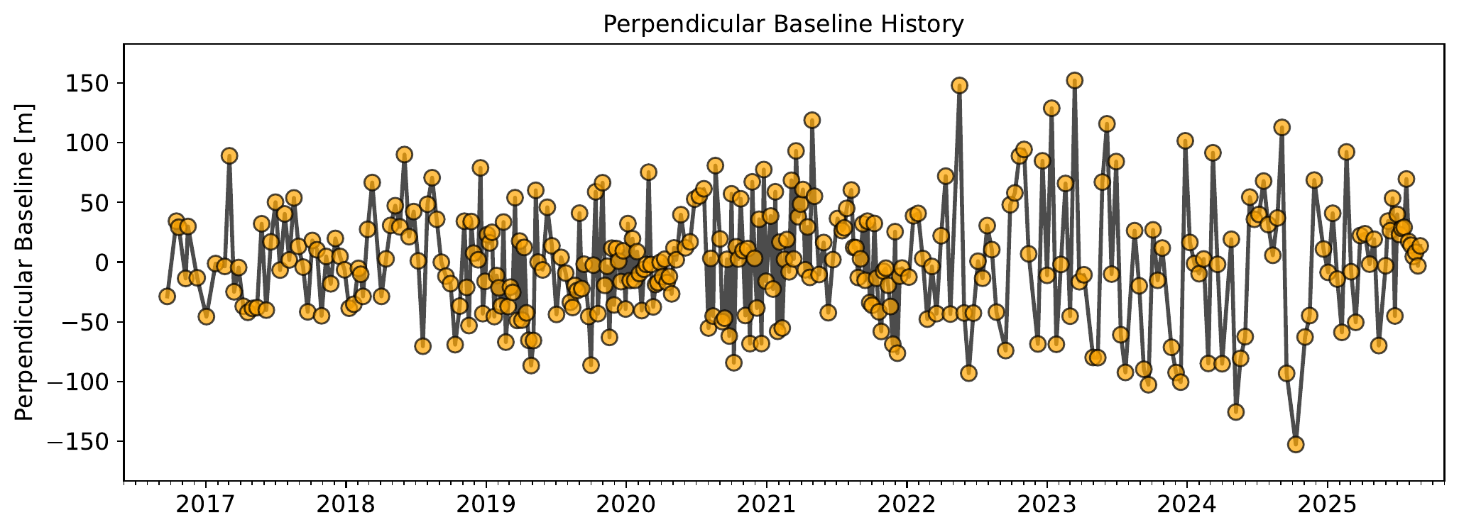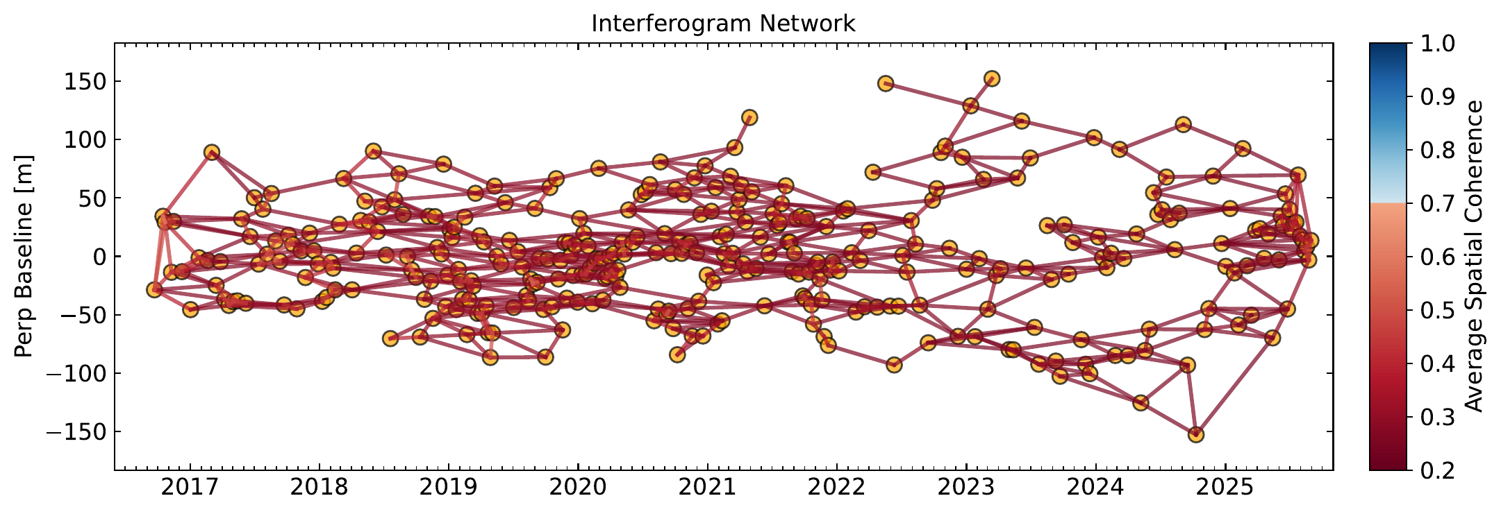 miaplpy.interferograms.delaunayPerpThresh = 200 # [meters] Perp baseline threshold for delaunay triangles, auto for 200