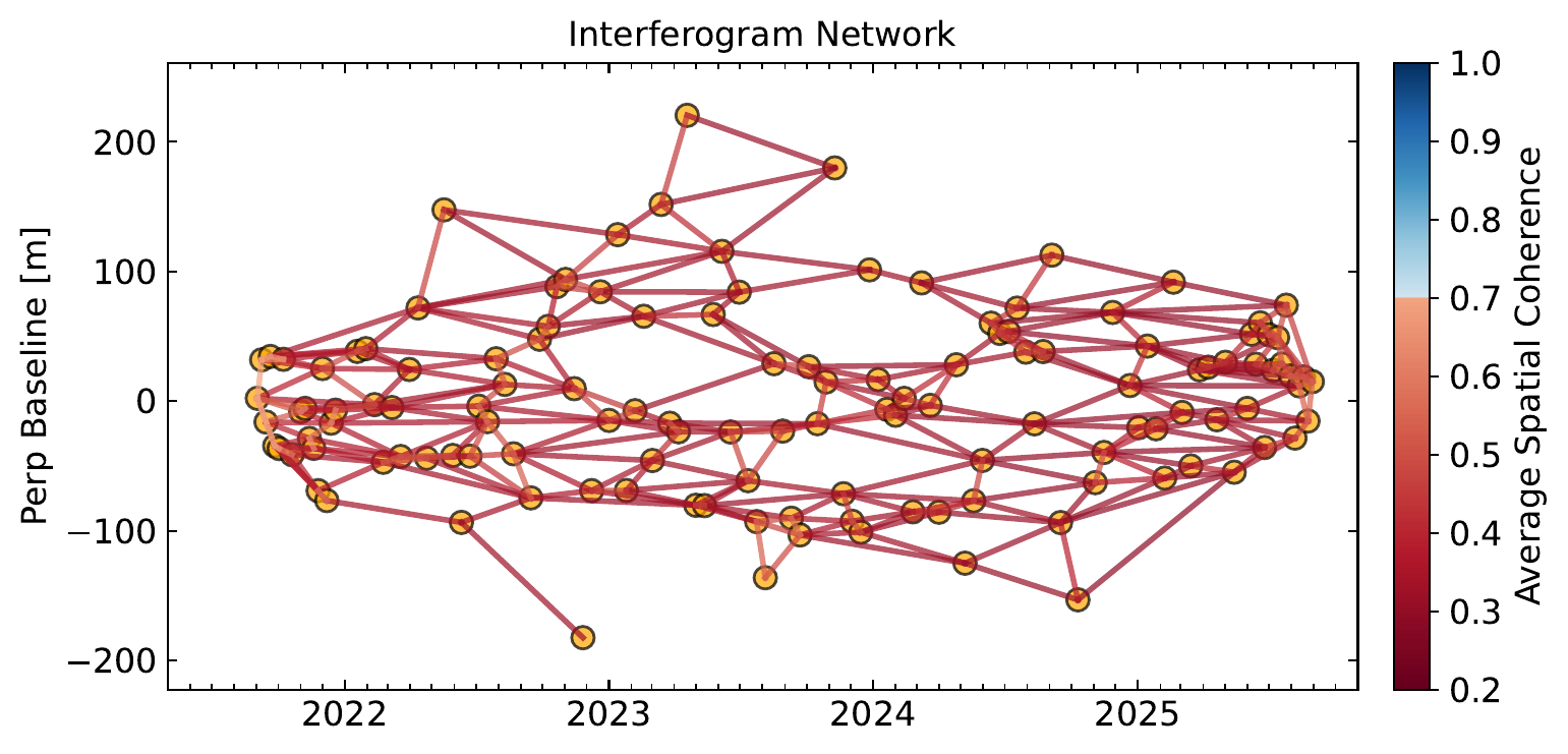 miaplpy.interferograms.delaunayPerpThresh = 200 # [meters] Perp baseline threshold for delaunay triangles, auto for 200
